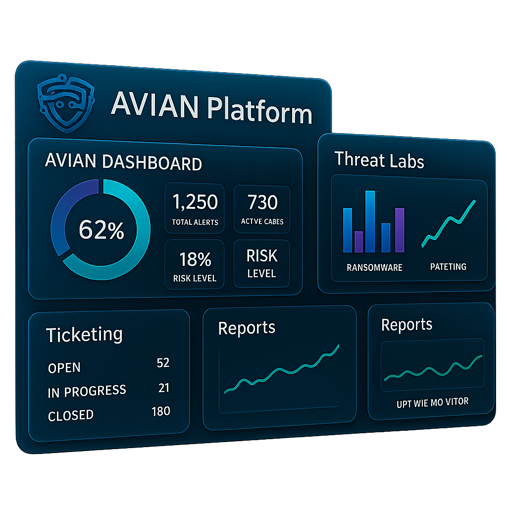 AVIAN brings monitoring, threat detection, ticketing, and executive reporting into one portal—so you get real-time visibility, faster response, and audit-ready proof of protection.